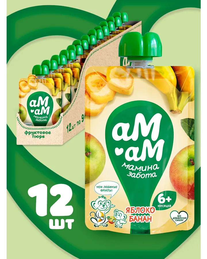 Пюре Ам-Ам Яблоко-банан с 6 мес 90 г 12 упак.