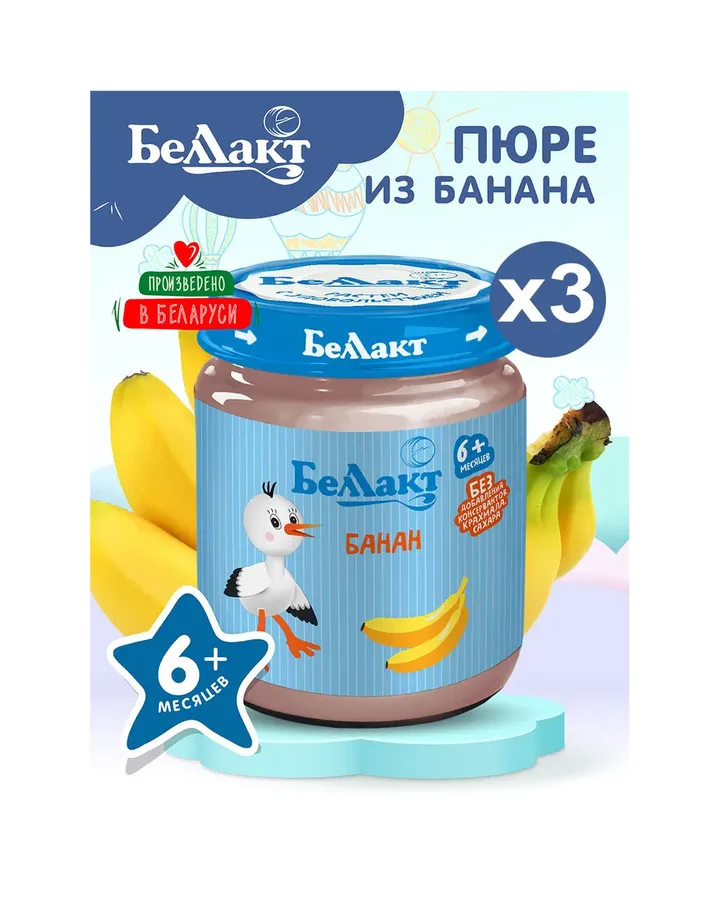 Пюре Беллакт Банан с 6 мес 100 г 3 упак.