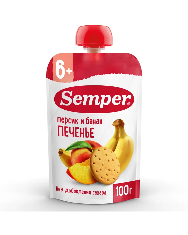 Пюре Semper Персик-Банан с печеньем с 6 мес 100 г