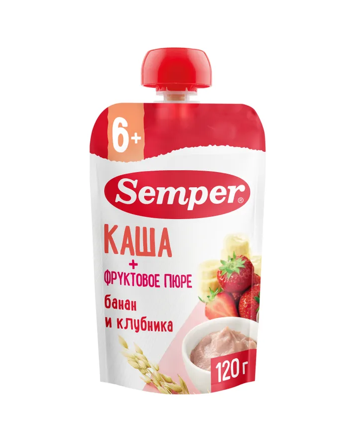 Пюре Semper Каша-банан-клубника с 6 мес 120 г