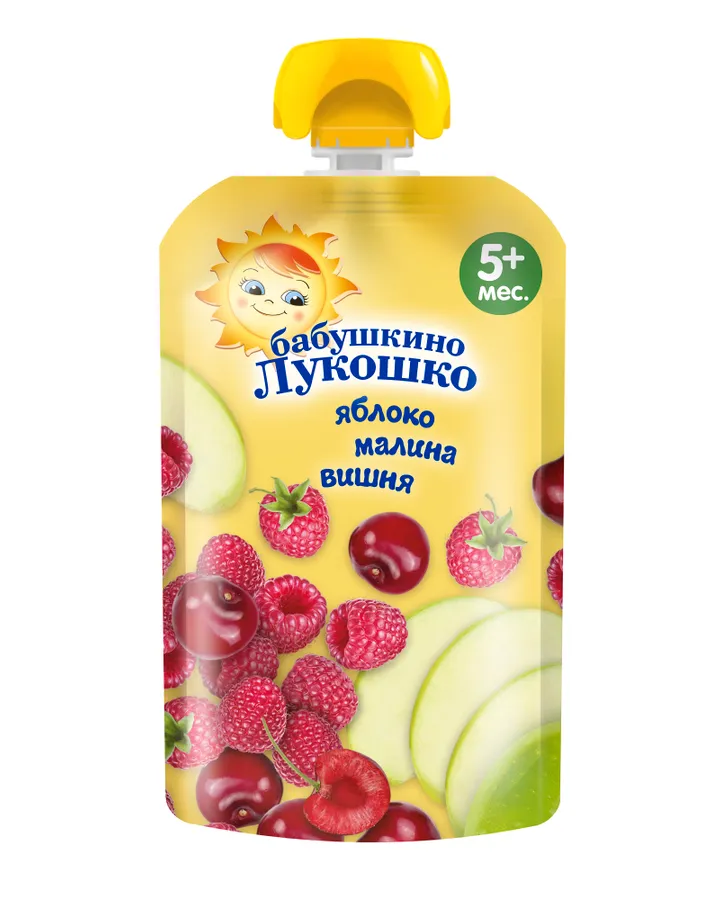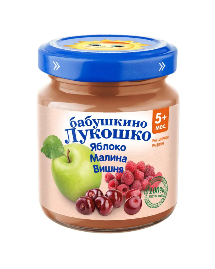 Пюре Бабушкино лукошко Яблоко-малина-вишня с 5 мес 100 г