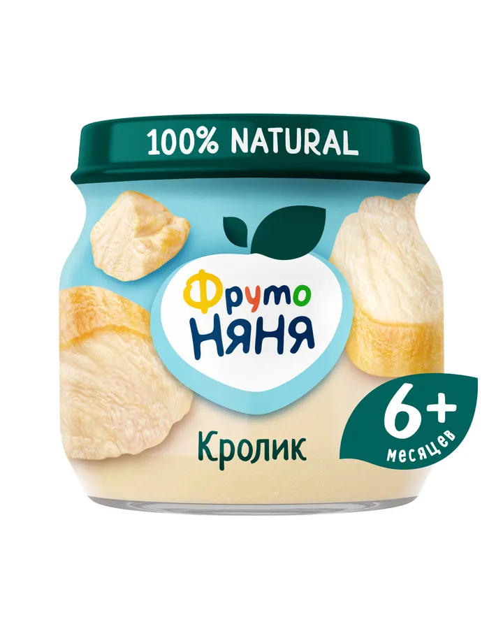 Пюре ФрутоНяня Кролик с 6 мес 80 гОчень вкусное пюре. Нет зернистости, как у Темы.