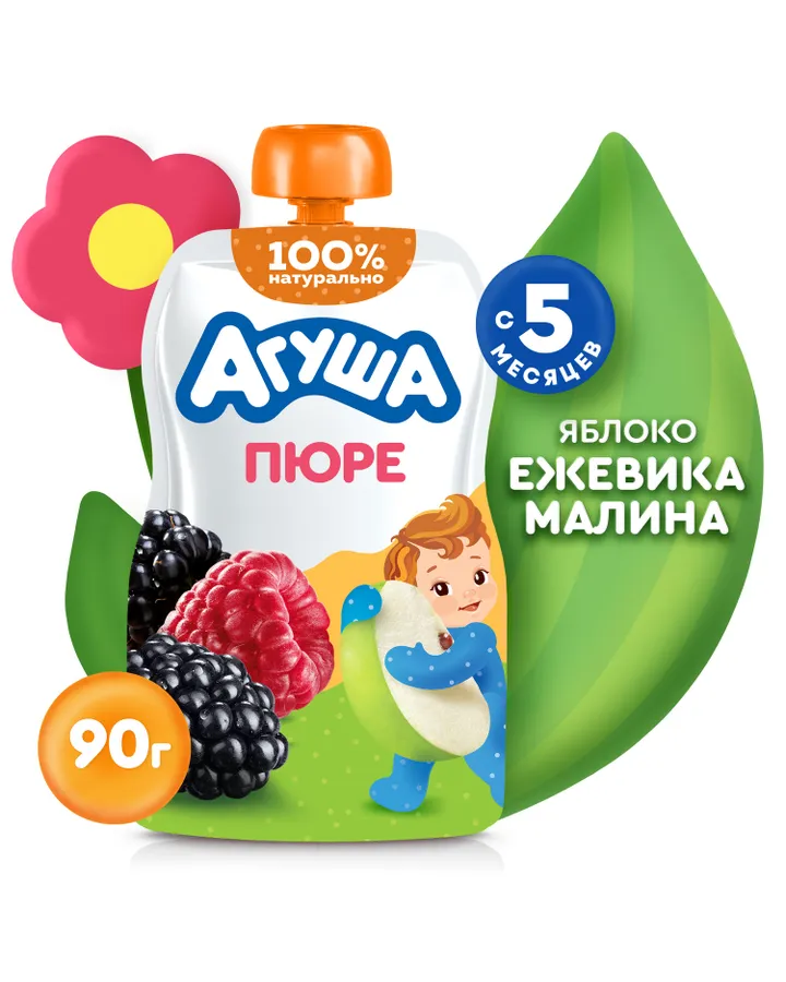 Пюре Агуша Яблоко-ежевика-малина с 5 мес 90 г