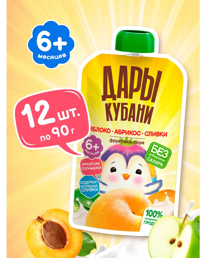 Пюре Дары Кубани Яблоко Абрикос Сливки с 6 мес 90 г 12 упак.