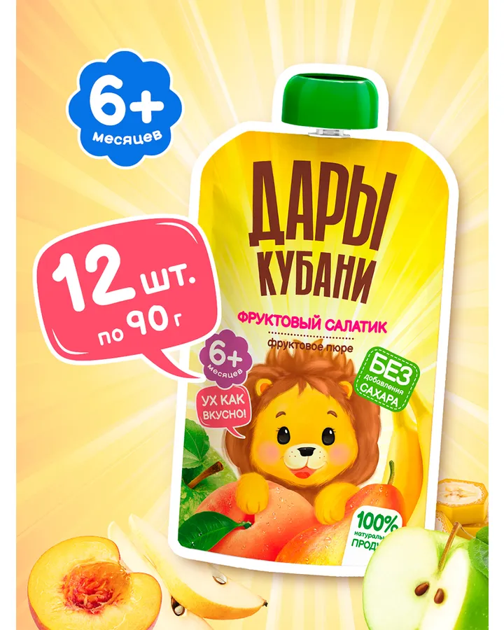 Пюре Дары Кубани Банан Груша Яблоко Персик с 6 мес 90 г 12 упак.