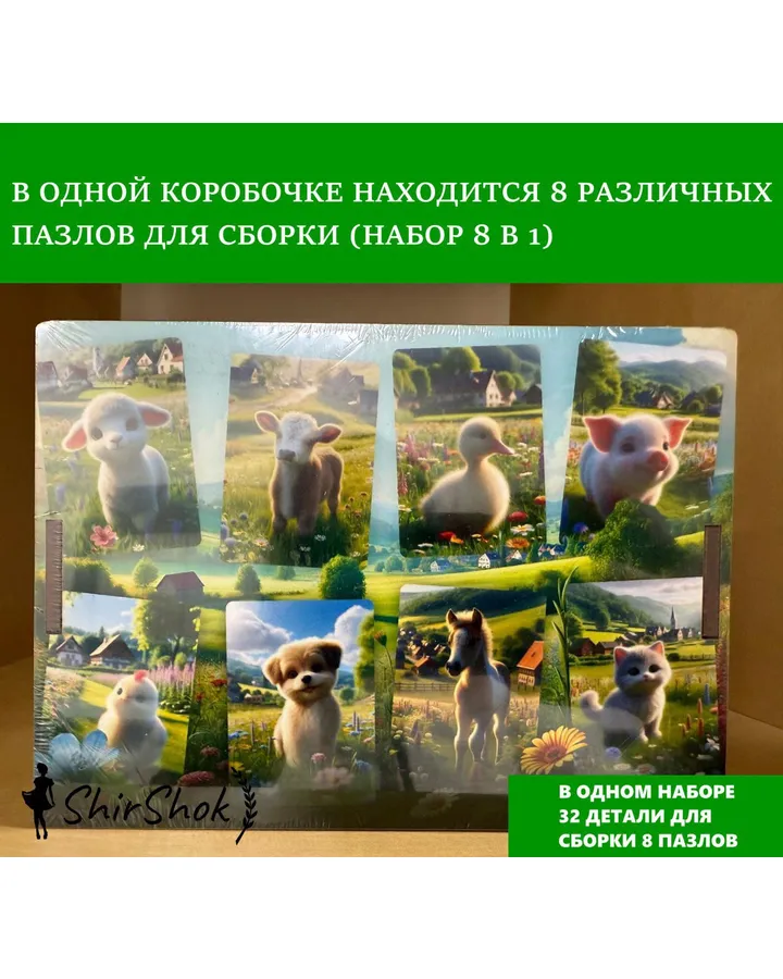 Пазл ШирШок Пазл-сортер Домашние животные деревянный