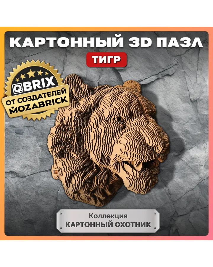 Пазл QBRIX Картонный охотник Тигр 3D
