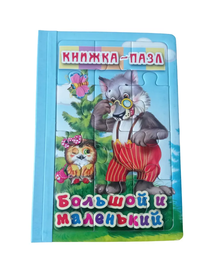 Хорошая книжка- пазл. Купили все книжки этой серии. Ребёнок в 3 г. собирал с удовольствием.