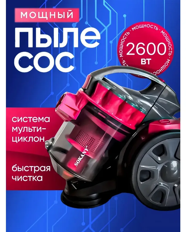 Мощный бытовой пылесос 2600 W проводной CASTLELADY Мощность всасывания 2000 ПАОчень понравился, классный пылесос. Маленький, а какой мощный! Рекомендую!