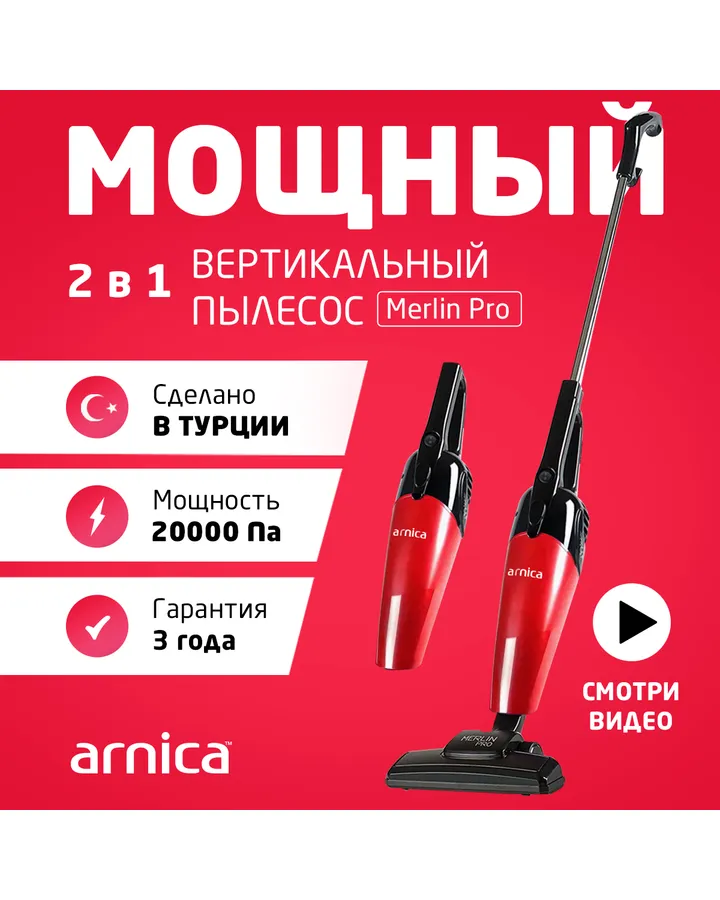 Вертикальный пылесос ARNICA Merlin Pro черно-красный
