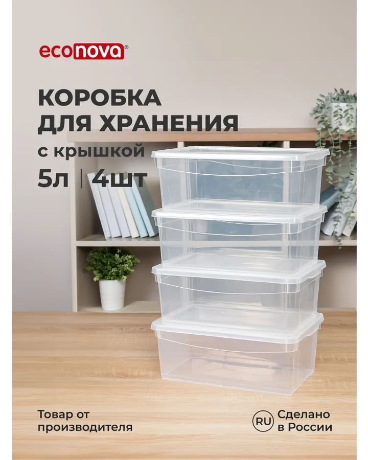 Ящики для хранения Бытпласт Кристалл 4шт по 5л