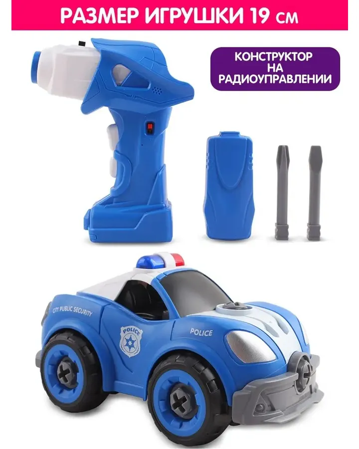5Полицейская машина РУ Lei Meng с шуруповертом, свет, звукКогда мы впервые увидели эту машину, оценили ее качество и дизайн. Но то, что нас удивило, это наличие электромеханического шуруповерта в комплекте. Это действительно оригинальная идея, потому что он помогает собрать или разобрать машину без особых усилий. Это очень удобно и экономит время