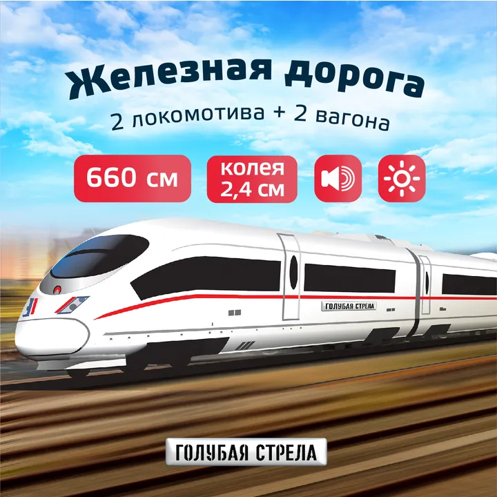 Набор железнодорожный Голубая СтрелаСыну купила на день рождения!качество хорошее!паровоз ездеет отлично!