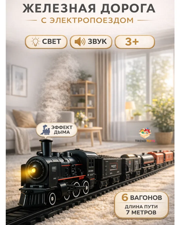 Отличная железная дорога, ребёнок в восторге. Особенно понравился пар и звук поезда — создаётся ощущение настоящего локомотива.