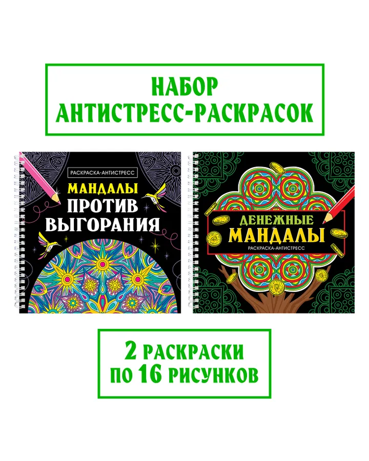 5Раскраска Проф-Пресс антистресс набор из 4 шт 21х21 см Мандалы девушка+деньги+счастье в личной жизни+узор👍
