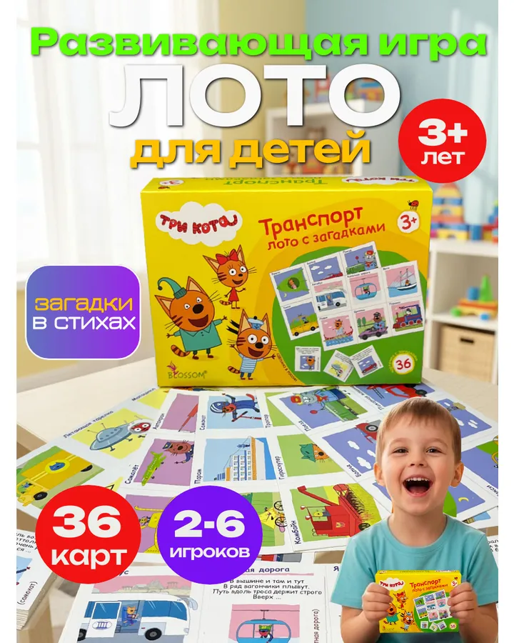 5Настольная игра Три котаЗагадки действительно интересные, каждую карточку с удовольствием прочитали. Картинки подобраны хорошо, разнообразно. Знакомит с видами транспорта, сын любит все что с этой темой связано, нам зашло.