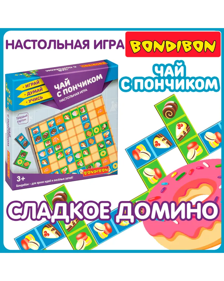 Настольная игра Bondibon домино пазл Чай с пончиком