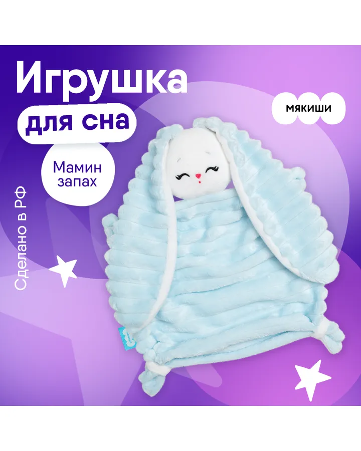 Мягкая игрушка Мякиши для новорожденных Зайка БанниОчень мягкая, нежная игрушка. Клала во время кормления между мной и ребёнком. Благодаря ей ребёнок дольше и спокойнее спит