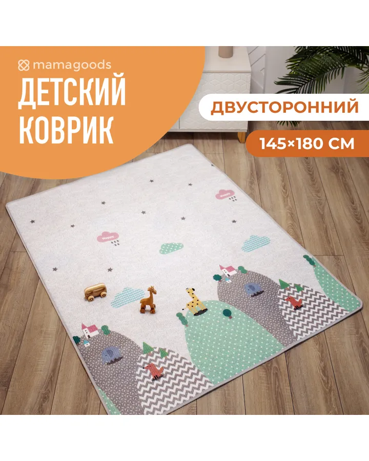 Развивающий коврик детский Mamagoods для ползания складной двусторонний игровой 145 x 180 см