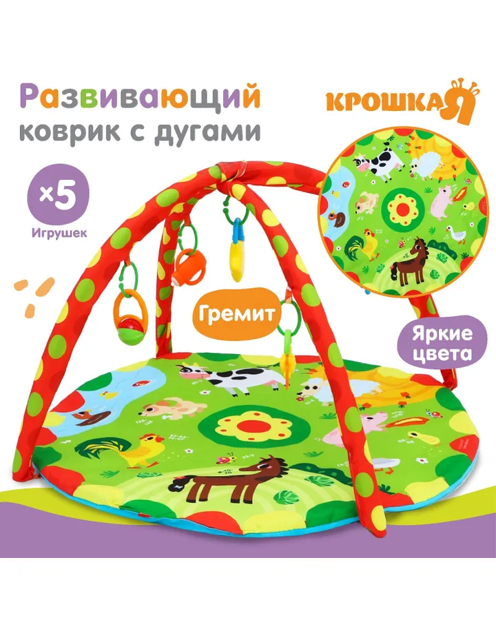 Коврик Крошка Я складной с рисунком «Паровозик. Жирафик» двусторонний размер 200х180 смЛучший коврик, очень понравился. Качество на 5, яркий и по размеру огромный))