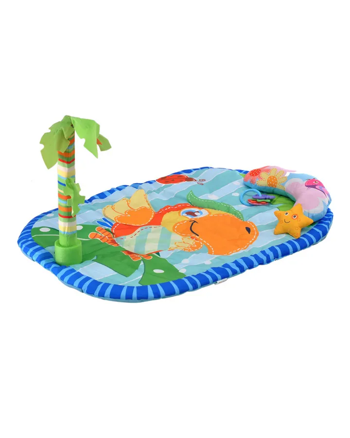 Коврик EVERFLOСравнить не с чем, раньше не покупала коврик. Данный коврик яркий, 3 игрушки, из которых 2 пластмассовые, одна мягкая, внутри можно вставить батарейки. Ткань синтетика, естественно.