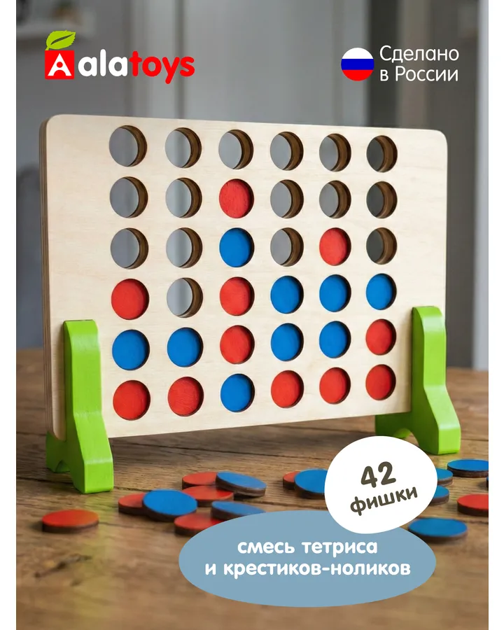 Игра "4 в ряд" - отличное развлечение для всех возрастов! Лёгкое игровое поле удобно брать с собой, и мы часто играем в дороге. Динамичные партии отлично скрасят любое свободное время.