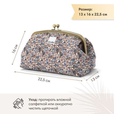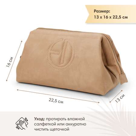 Большая, стильная косметичка. Можно использовать в открытом виде как органайзер для детских принадлежностей. Хорошо держит форму.