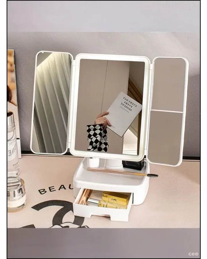 Зеркало для визажа складное со шкатулкой CASTLELADY с LED подсветкойПолноценное настольное зеркало, не маленькое, подсветка работает, можно режимы свечения выбирать.Мне очень понравилось, возьму на подарки подругам, солидно выглядит.