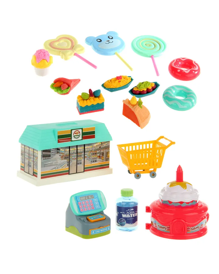 Игровой набор Veld Co тележки и корзинки, прилавок, касса, продукты