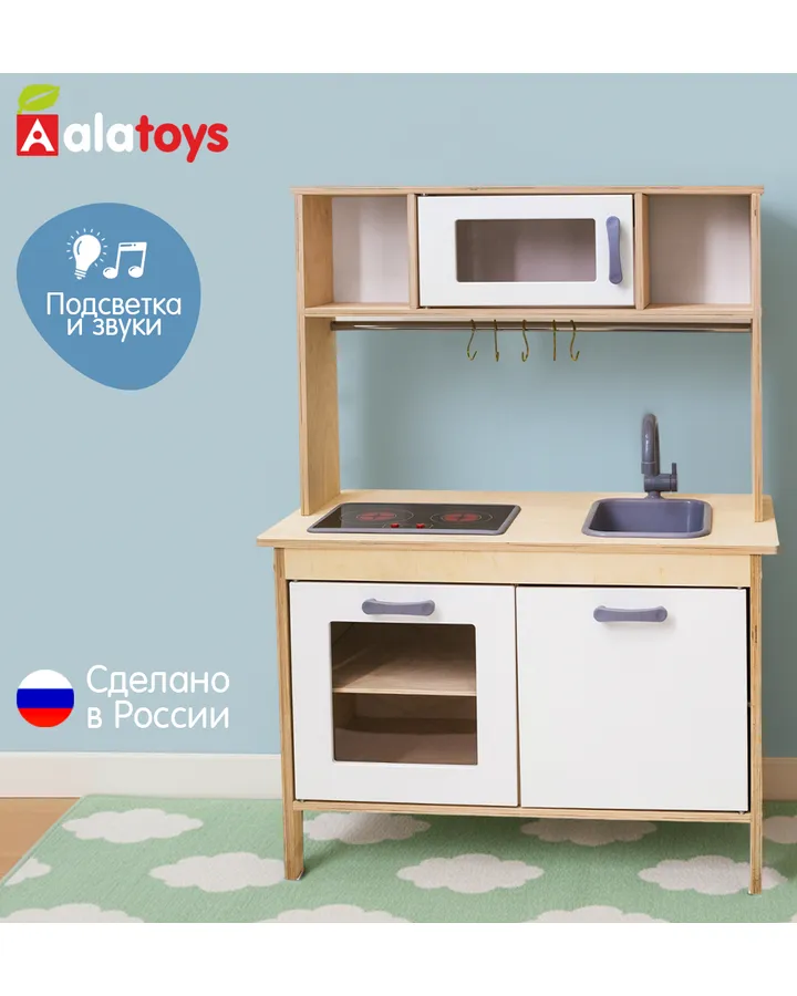 Игрушечная кухня Alatoys в ассортиментеОчень понравилась ребенку, немного добавили света в духовку и микроволновку, подсветку над рабочей панелью, стало гораздо реалистичней и интересней