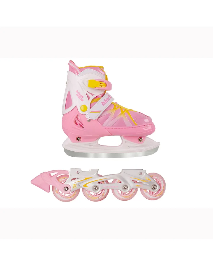 Универсальные роликовые коньки. Покупала шестилетней сестре на день рождения, так как ей очень понравилось кататься на катке, но так как уже был конец зимы выбор пал на совмещённые коньки с роликами и это стало идеальным решением. Уже второй год сестра гоняет в них что летом, что зимой, коньки на ролики меняются очень просто