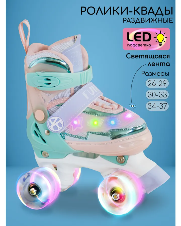 5Роликовые коньки Amarobaby L 34-37Яркие, приятные цвета, колеса светятся, первое впечатление очен достойные ролики