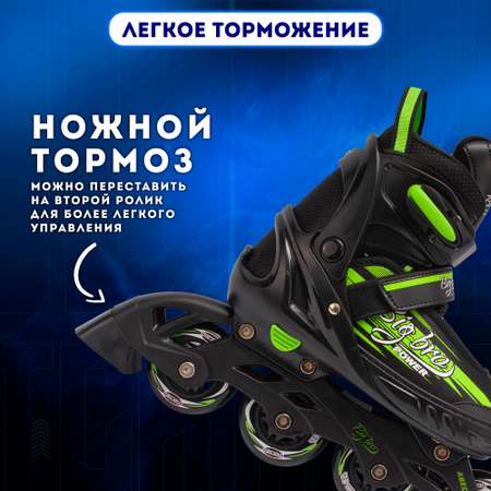 5Роликовые коньки BIG BRO 40-43Отличные! Удобные, ботинок хорошо держит ногу. Раздвижные на три размера. Заводская заточка присутствует.