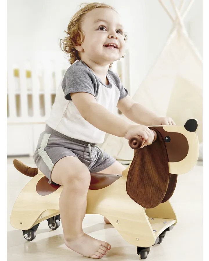 Каталка прекрасная, сделана из дерева, колеса легко катятся.