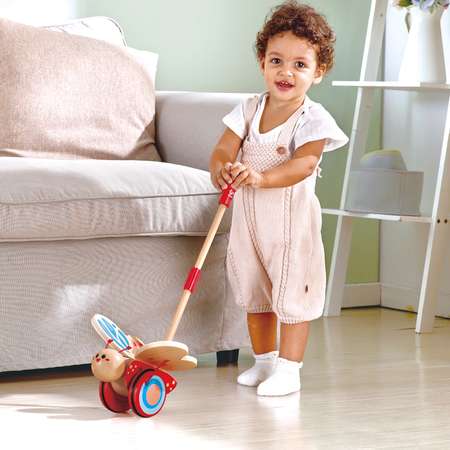 Каталка прекрасная, сделана из дерева, колеса легко катятся.