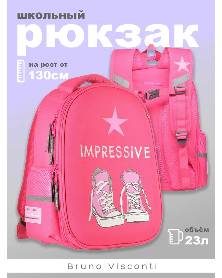 Рюкзак Bruno ViscontiКупили дочери на 3 класс. Дочь а восторге, рюкзак большой, в мешок доя обуви поместятся даже 👢. Рюкзак бомба. Посмотрим как будет в носке.
