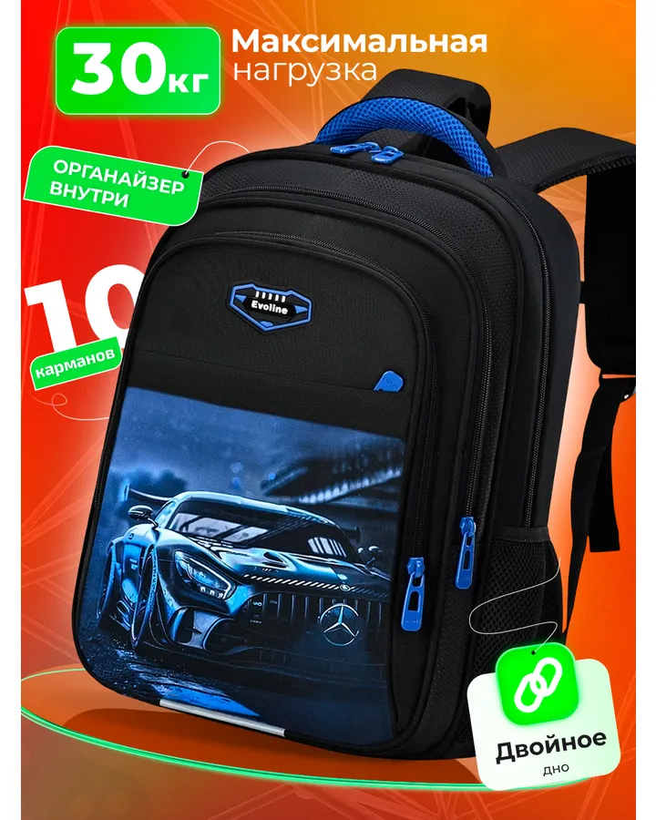 Классный рюкзак, легкий, держит форму, компактный, купили для 3-4 классов, вся учеба входит, много карманов, есть потайной на спинке. Сменка не входит, но она ни в какой рюкзак не входит, так что норм