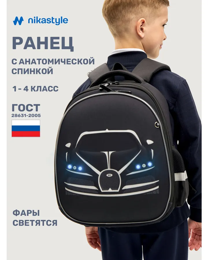Ранец NIKASTYLEРюкзак супер, качественный, красивый и вместительный. Фары светятся,сыну очень понравился. Взяли в 1-й класс, нам подошло))