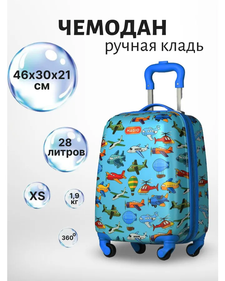 5Чемодан Magio СовыЧемодан хороший, передил уже 2 перелета. Размер подходящий для детских вещей, влезло все необходимое