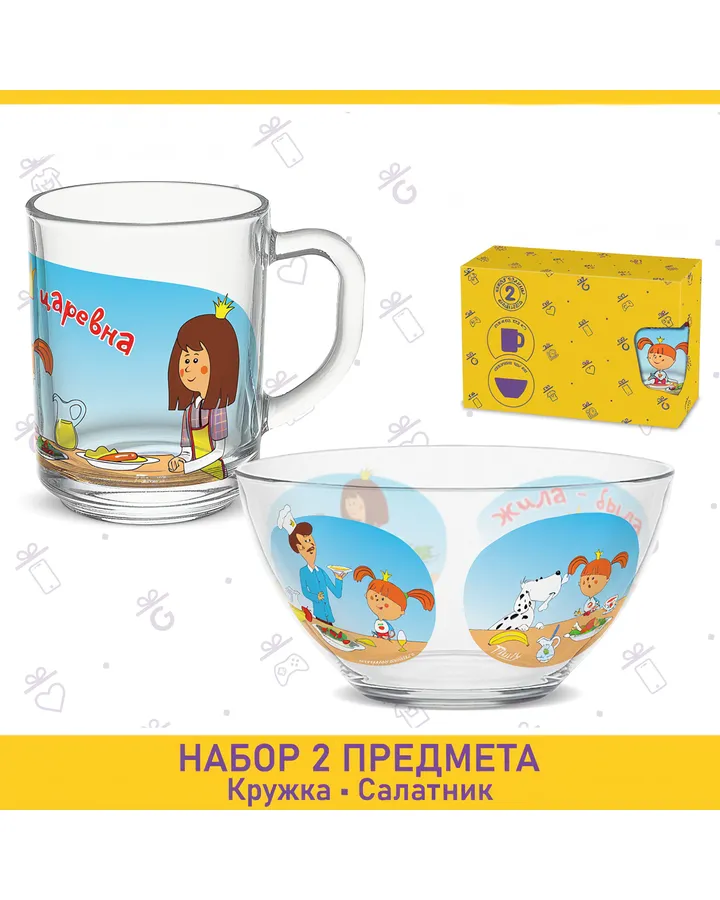 Набор посуды детский стекло PRIORITY кружка салатник Жила-была царевна