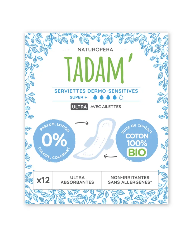 Прокладки гигиентические TADAM Таувелс Дермо-Сенситив Ультра Супер Плюс 4 капли 12 шт