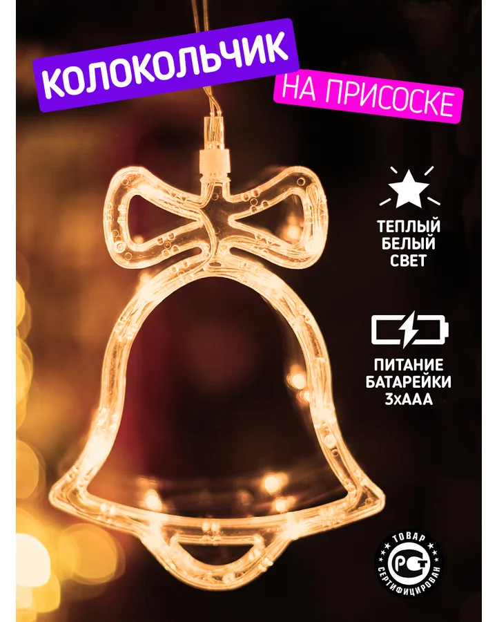 Светодиодный ночник NEON-NIGHT Колокольчик на присоске с подвесом