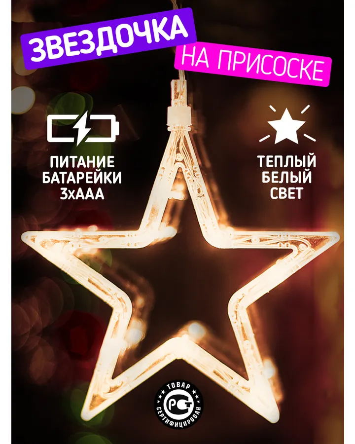 Светодиодный ночник NEON-NIGHT Звездочка на присоске с подвесом