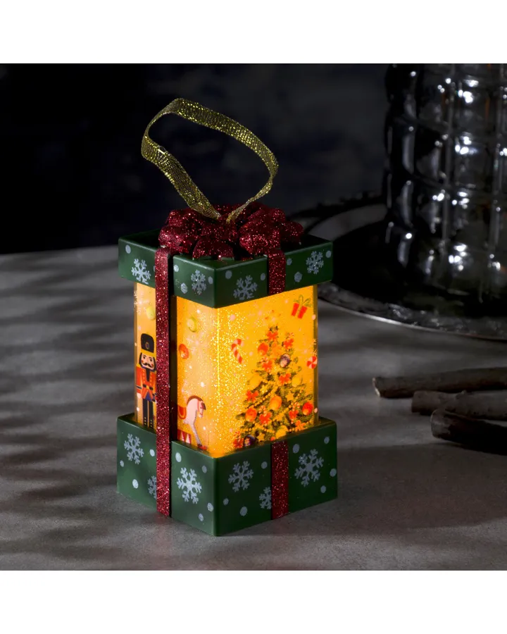 Светодиодная фигура Sima-Land «Зелёный подарок с ёлкой» батарейки не в комплекте эффект пламени