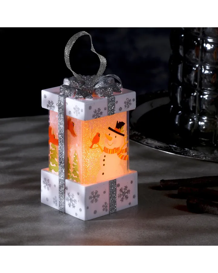 Светодиодная фигура Sima-Land «Белый подарок со снеговиком» батарейки не в комплекте эффект пламени