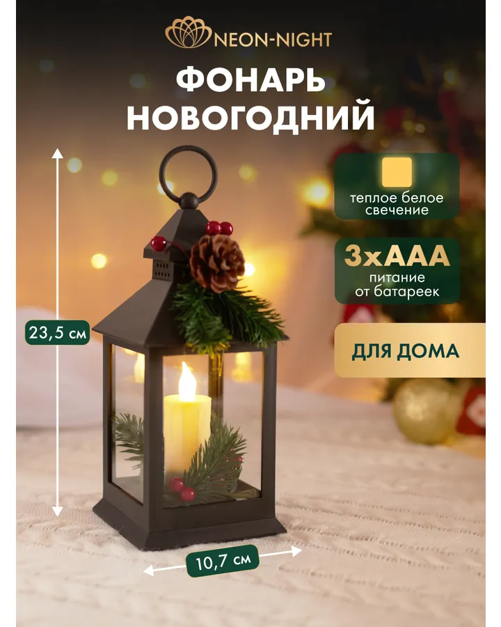 4Фонарь-светильник NEON-NIGHT декоративный светодиодный со свечкой и подвесомКрасивый.под старину.но светит слабо