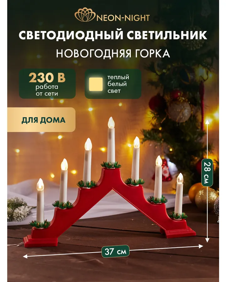 5Ночник декоративный NEON-NIGHT со свечой и шишкой в черном корпусе тепло-белое свечение