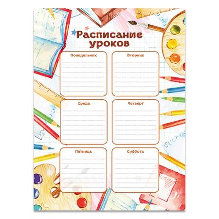 На сайте «Детский мир» в каталоге представлено в ассортименте расписание для уроков. Добавляйте товар в корзину и оформляйте заказ.