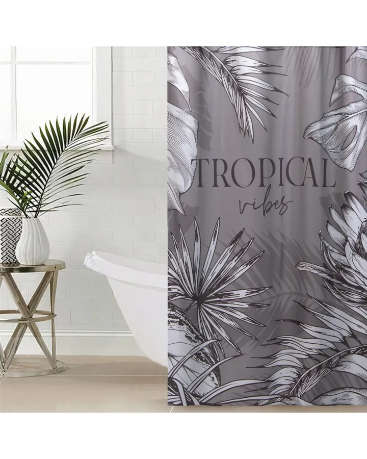 Штора для ванной с люверсами 180х180 см VILINA с рисунком с 3D эффектом серая