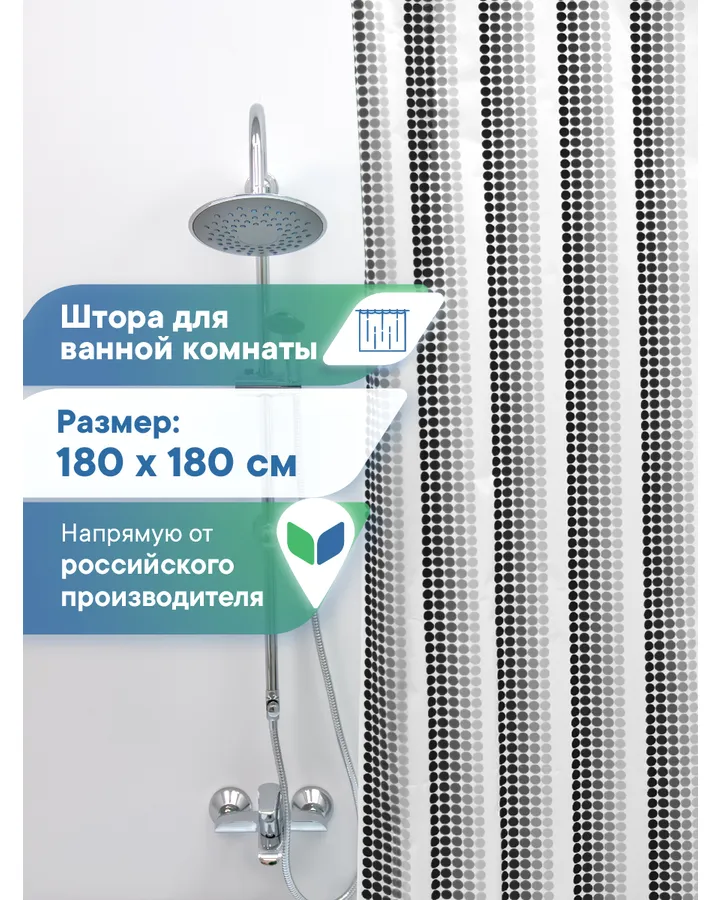 Штора для ванной комнаты и душа VILINA текстильная водоотталкивающая 180х180 см полиэстер